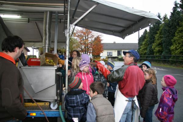 Schulkinder produzieren reichlich gesunden Apfelsaft