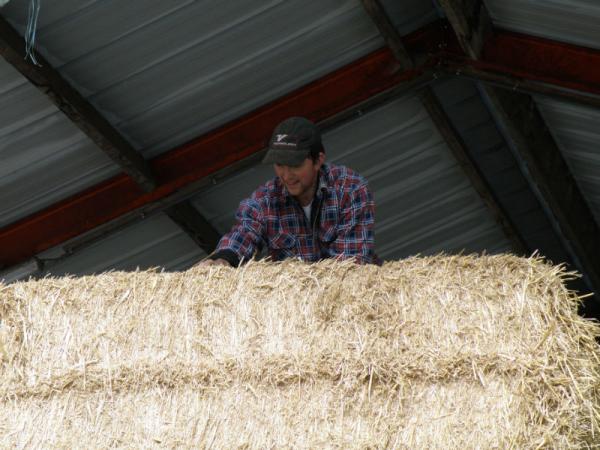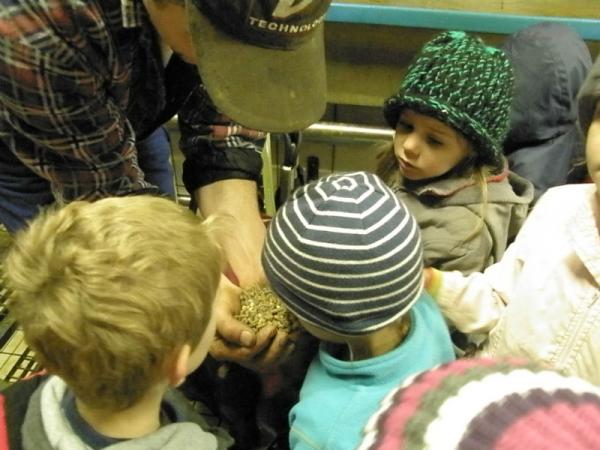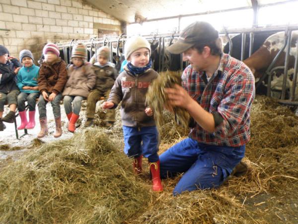 Stephan erklärt uns hier auch den Unterschied zwischen Stroh, Heu und Silo. Wir dürfen auch mal riechen.
