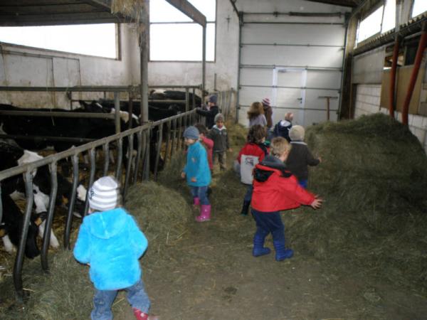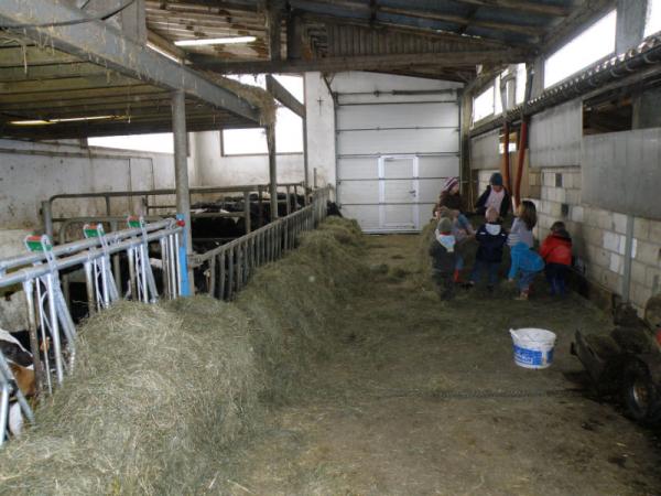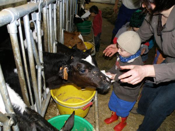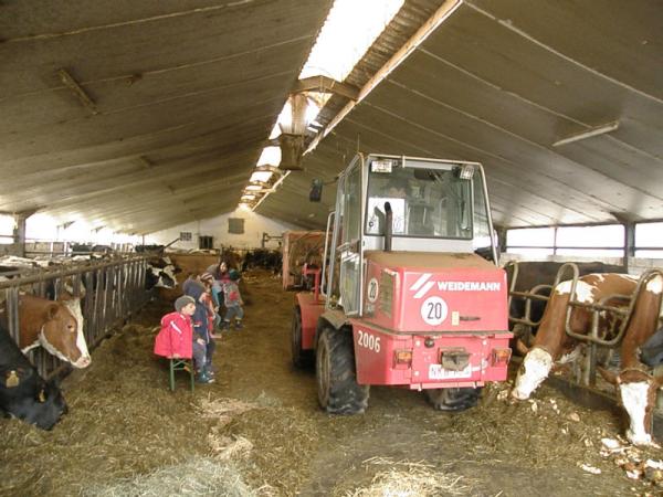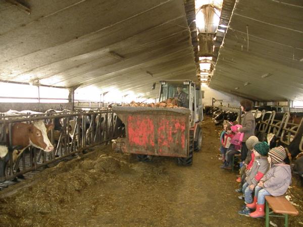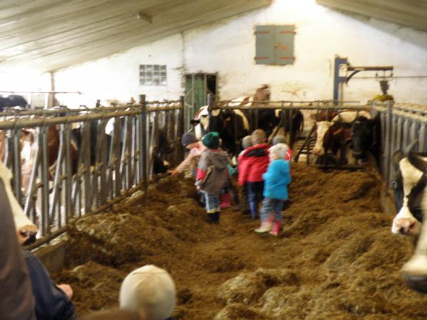 Nun geht es auf in den Stall. Manche können gar nicht schnell genug zu den Kühen kommen!