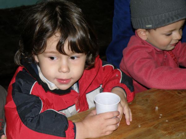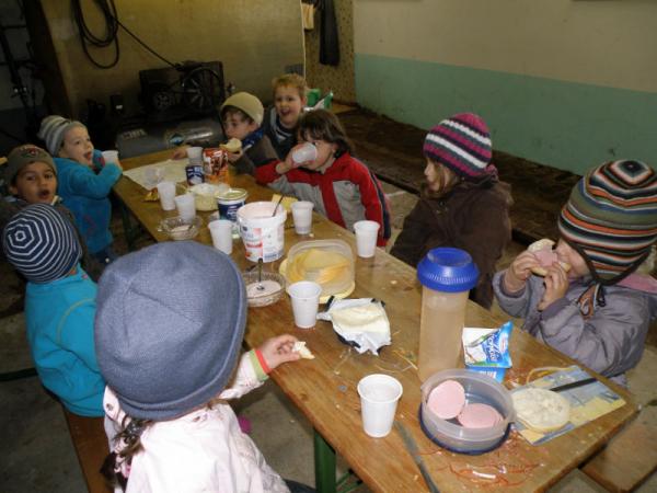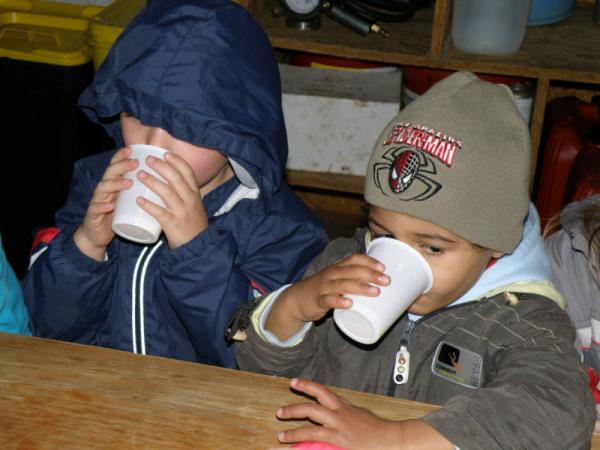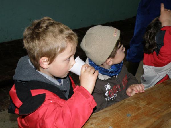 Nachdem wir uns mit leckeren Brötchen und Kakao gestärkt haben, sind die Kälbchen dran.