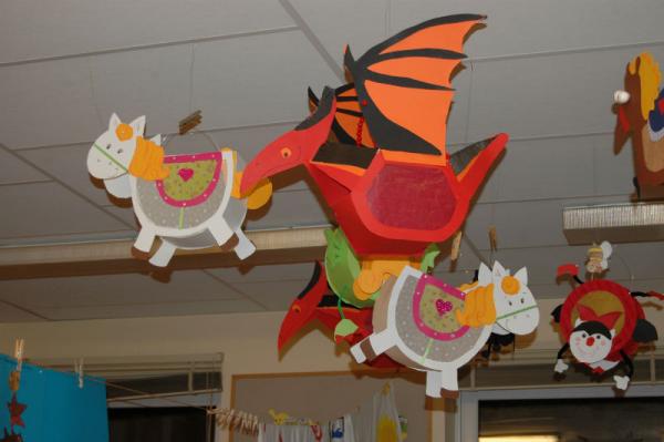 Feurige Flugdrachen, Pferde und Fledermäuse gestalten unsere Klasse.