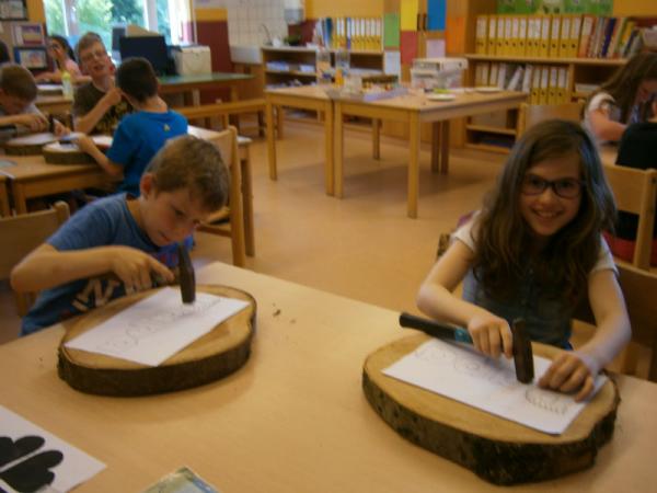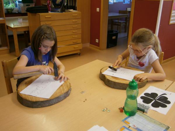 Mit Hammer und Nagel wurde ein originelles Vatertagsgeschenk gebastelt.
