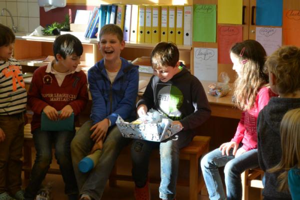 Nachdem wir Gedichte, Lieder und Texte vorgetragen hatten, gab es Geschenke für unsere Klassengemeinschaft.