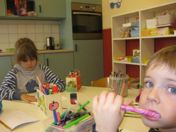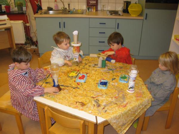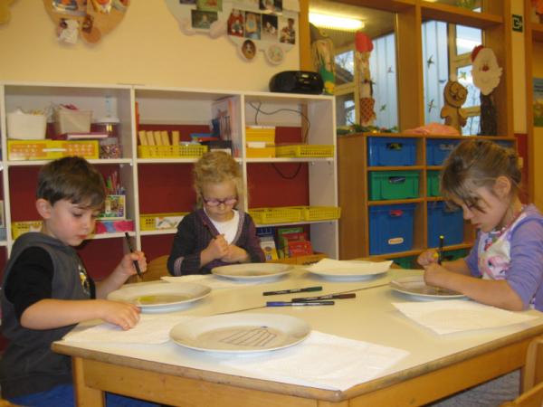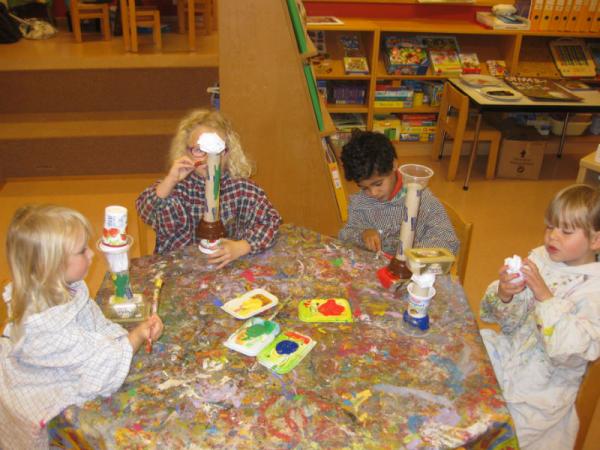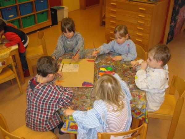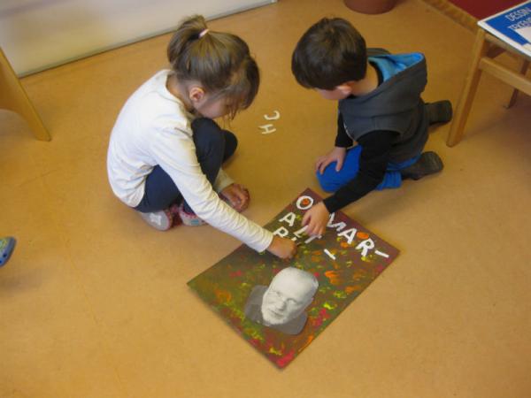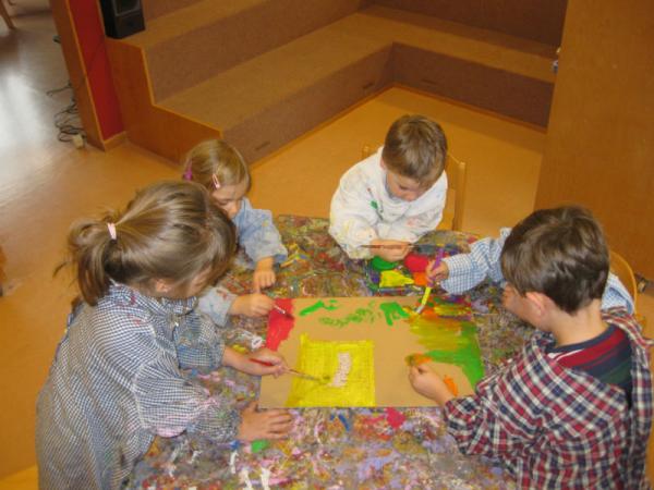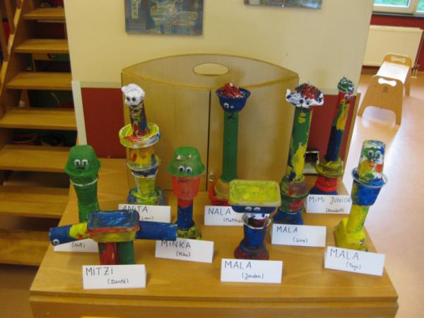 Wir haben ein großes "Otmar Alt Buch" gestaltet, ein Gemeinschaftsbild vom Conferencier erstellt, das Alt- Alphabet kennengelernt, Porzellanteller bemalt und Katzenplastiken, sowie Wesen mit seltsamen Namen kreiert.