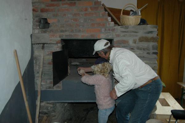 Nachdem der Ofen gut geheizt und die Glut heraus genommen wurde, konnten wir unserer Brote in den Ofen schieben.