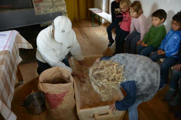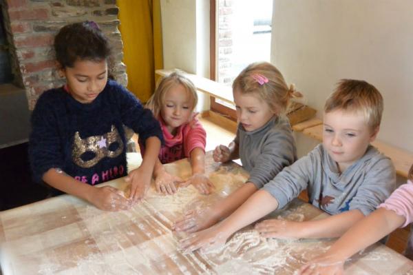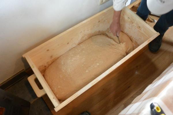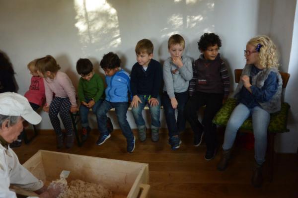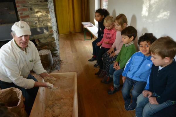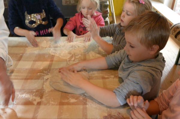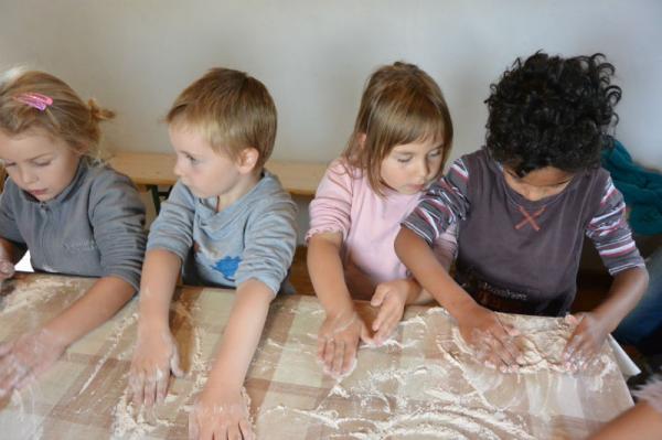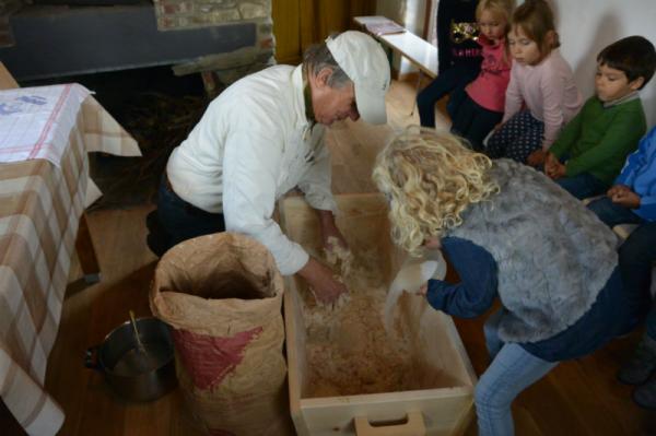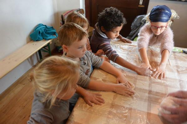 Wir durften zuschauen, wie aus Mehl, Wasser und Hefe der Brotteig entstand.