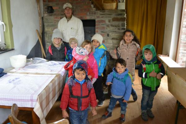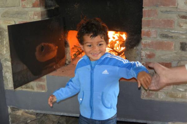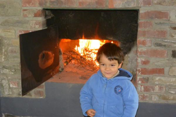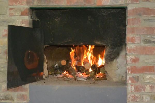 Währenddessen durften wir den Backofen mit Holz heizen.