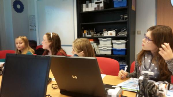 Nun wurden wir in zwei Gruppen eingeteilt. Gruppe 1 hat sich mit Crissa die Robotertechnik genauer angeschaut und später durften wir selbst einen Roboter programmieren.