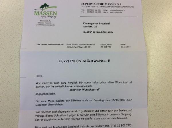 Die Knder des Kindergartens haben gemeinsam einen Wunschzettel gebastelt und beim "Wunschzettelwettberwerb" agbebegen.