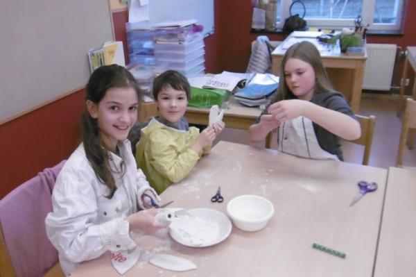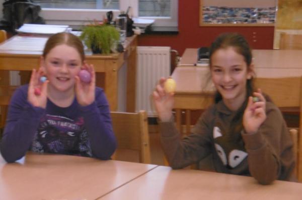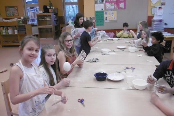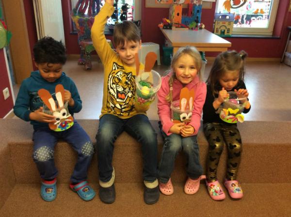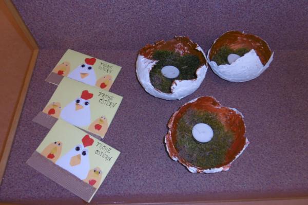 Im Kindergarten wurden Ostergläser, Osterhasen und Gipseier gebastelet.