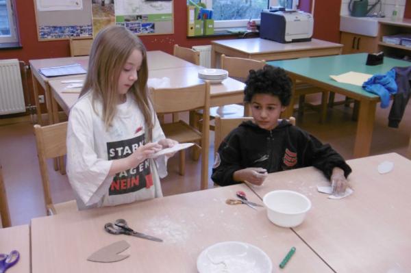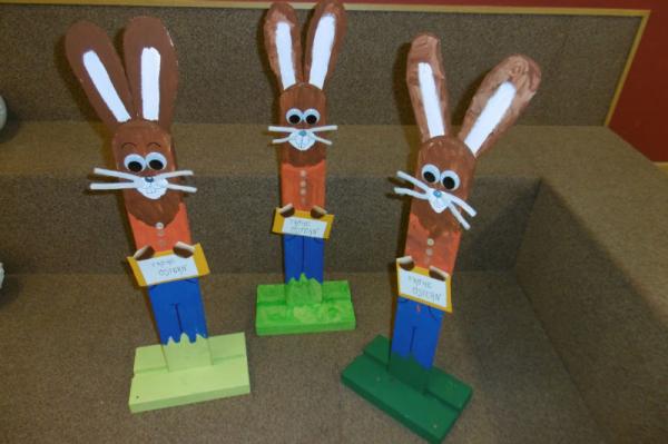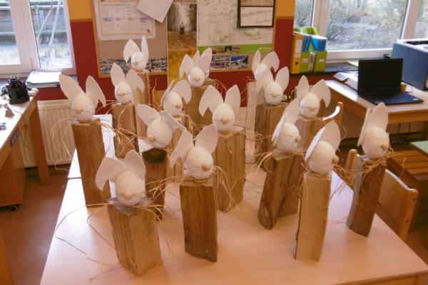In der Primarschule wurden dekorative Osterhasen aus Kaminholz gebastelt.