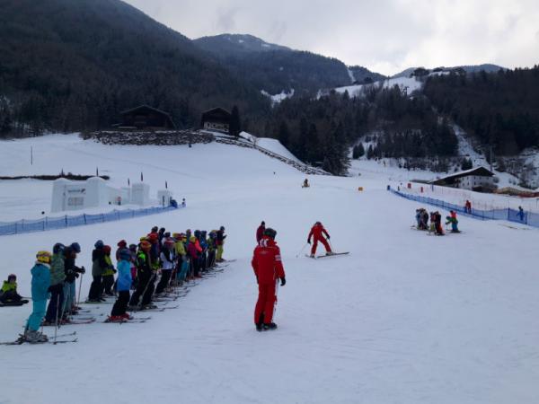 Heute hatten wir wieder strahlenden Sonnenschein und unsere Skikünste werden immer besser! Alle Kinder fuhren rote Pisten und sogar einige die Talabfahrt!