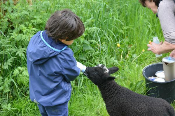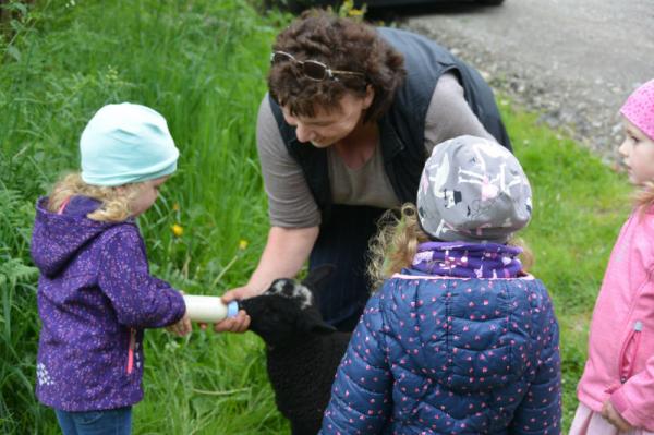 Bei der Fütterung der Lämmchen durften wir helfen und hatten dabei viel Spaß.