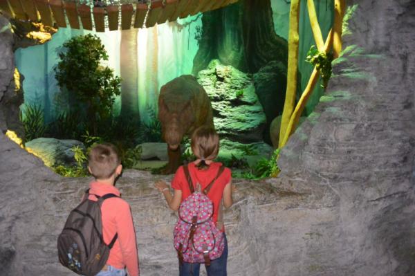 Zwischen Urwaldbäumen umherstreifen, Hängebrücken erklimmen, eine Ausgrabungsstätte entdecken und einem lebensechten Tyrannosaurus Rex begegnen. Entdecke unsere Themenwelt Leben, in der du vieles über Mensch, Tier und Natur lernst!