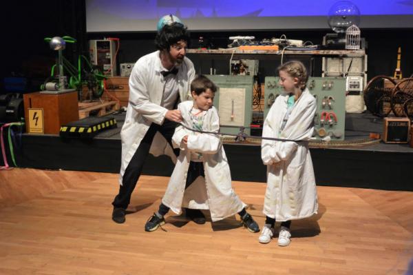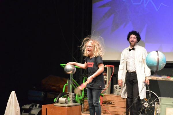 In der fesselnden Science Show Volle Ladung dreht sich alles um das Thema Strom und Stromerzeugung. Der berühmte Erfinder, Physiker und Elektroingenieur Nikola Tesla, der im 19. Jahrhundert lebte, entführt dich mit verblüffenden Experimenten in die Welt der Physik. Dir werden buchstäblich die Haare zu Berge stehen!