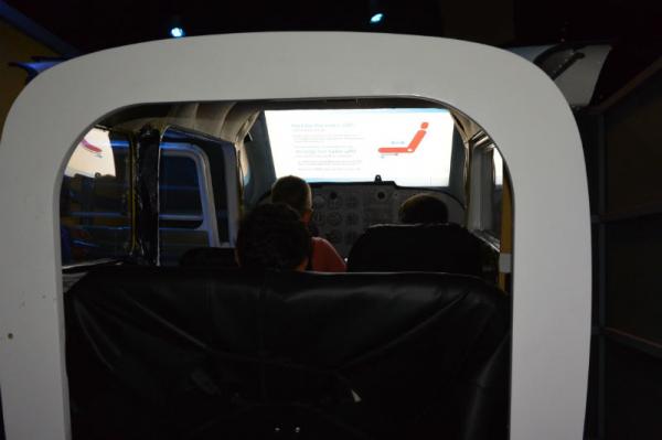 Hast du das Zeug zum Piloten? Im Flugsimulator sitzt du in einer echten Cessna. Du fliegst mit deinen Passagieren in einem virtuellen Rundflug über Köln und kannst von oben die Stadt erkunden.