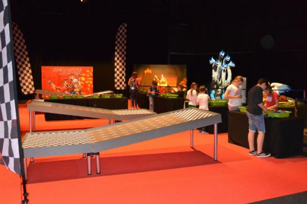 In der Rennfahrer Zone kannst du dein selbst gebautes Rennauto an den Start schicken. Vielleicht schaffst du es sogar auf das Siegertreppchen?