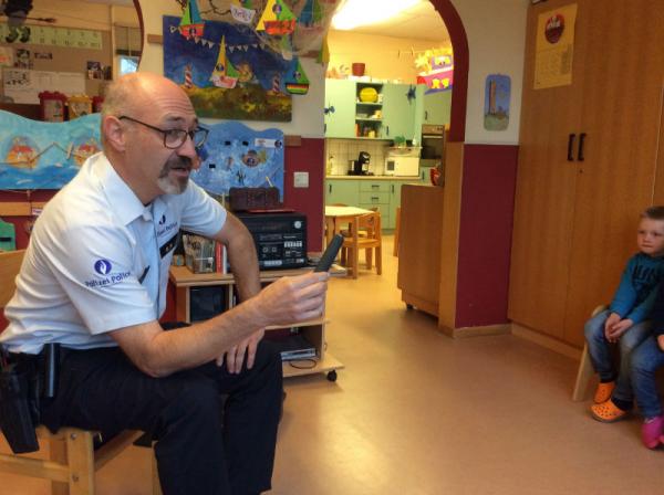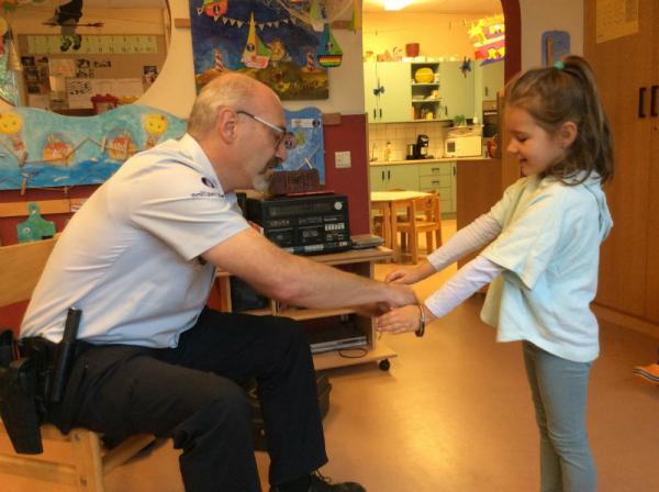 Freddy Lenz von der Polizeizone Eifel besucht uns im Kindergarten.