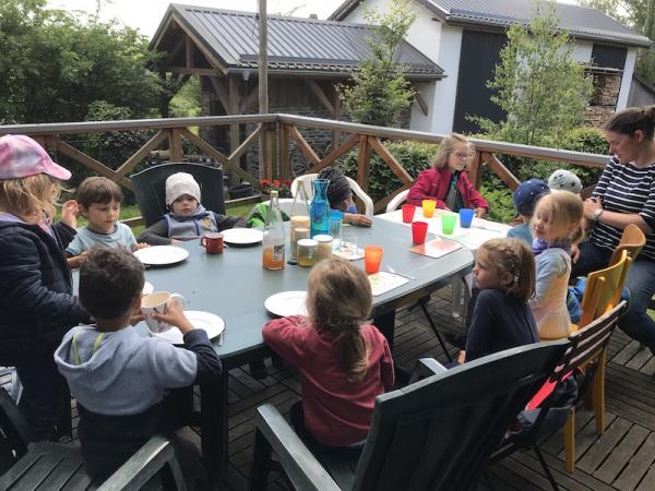 Nach der Mittagspause können wir unsere Brote abholen und genießen zum Abschluss ein leckeres Stück Kuchen bei Familie Arens.