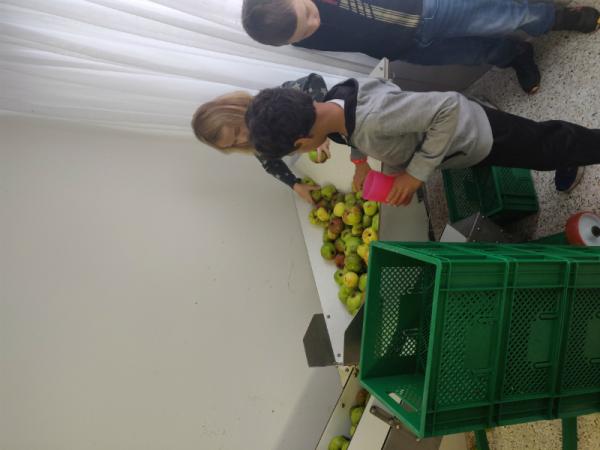 Anschließend gingen wir tatkräftig an die Arbeit. Die Kinder halfen beim Befüllen der Maschine, dem Pressen der Äpfel und dem Abfüllen des fertigen Apfelsaftes.