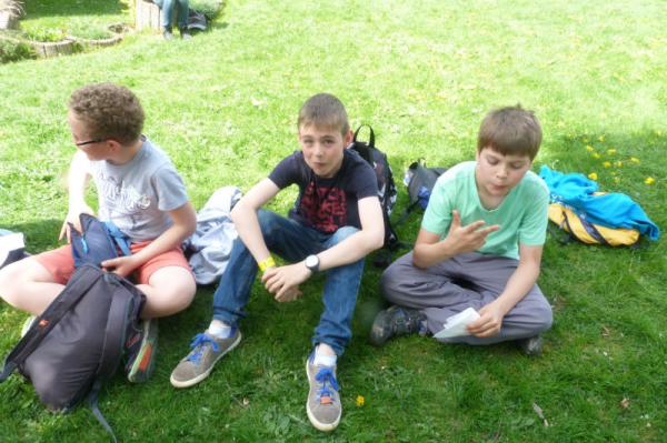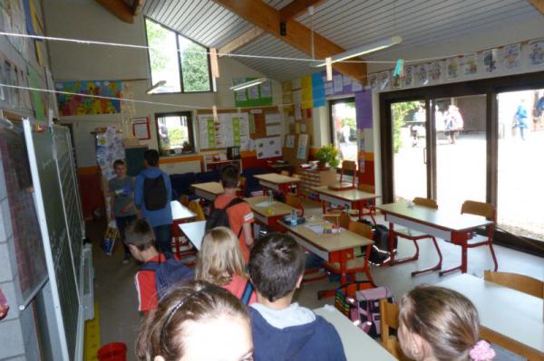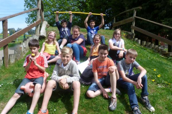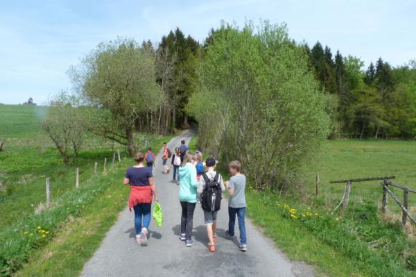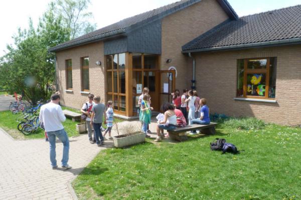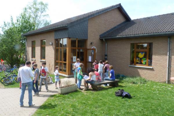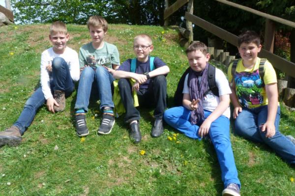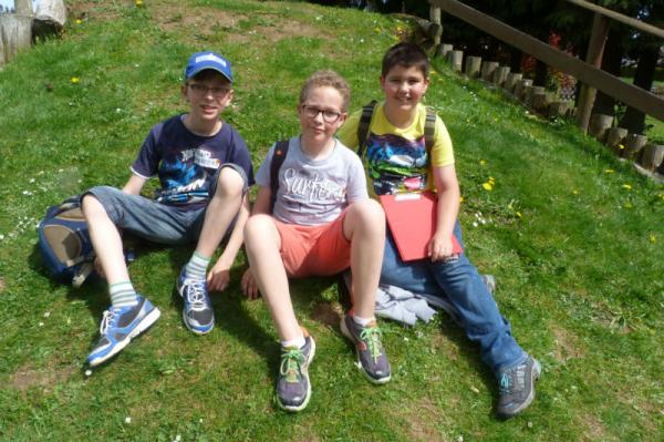 Ils ont démarré au Ravel de St. Vith avec Mme Patricia, leur professeur de français et M. Alain, l’instituteur d’Aldringen. Ils sont allés jusque Waimes (17km) à vélo. Les élèves de Waimes étaient venus à leur rencontre à pied avec leurs instituteurs et leur professeur d’allemand. D’abord, ils ont pique-niqué et discuté ensemble. L’après- midi, ils ont joué avec leurs correspondants. Ils ont fait une chasse au trésor dans les bois. Chaque élève se trouvait dans le même groupe que son correspondant. Après le jeu, comme récompense, les gagnants ont reçu des bonbons et les perdants aussi. A la fin de la journée, ils sont tous repartis sur le Ravel pour retourner à St-Vith et à Waimes.