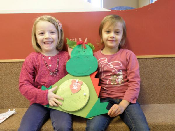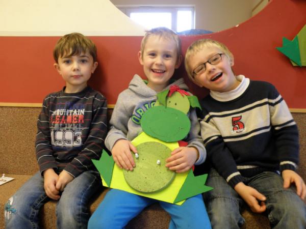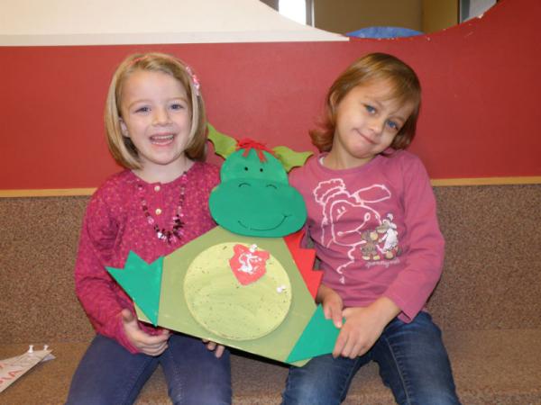 Jussi, Annabell, Mika, Owen, Jayson, Pia und Aimy präsentieren stolz ihre Drachen.