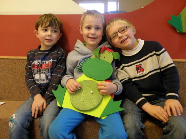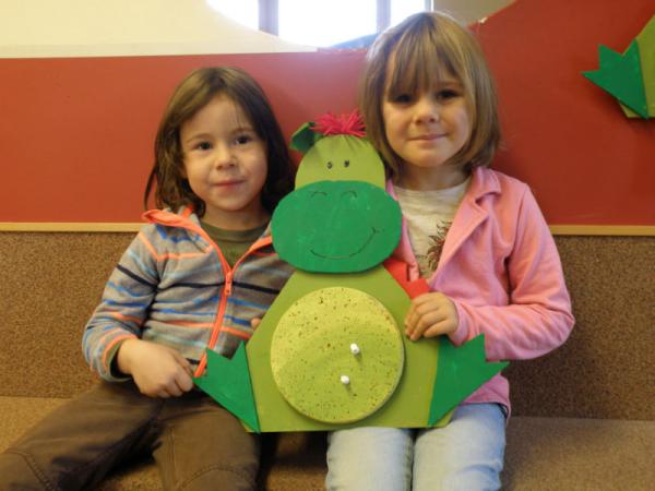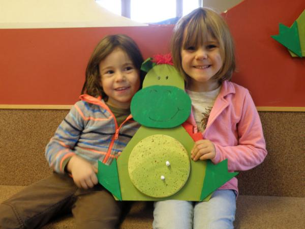 Im Kindergarten wird fleißig gesägt. Puh, das ist anstrengend!