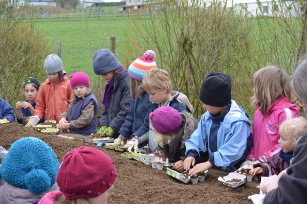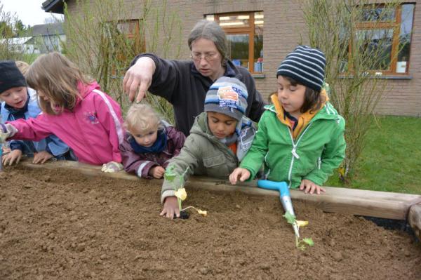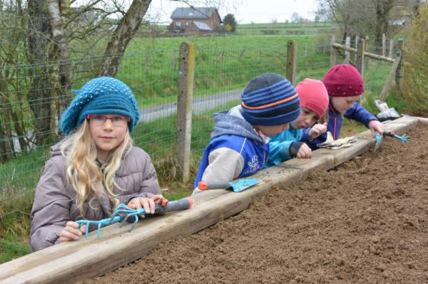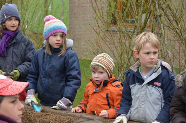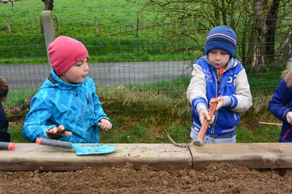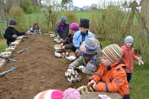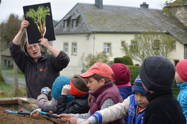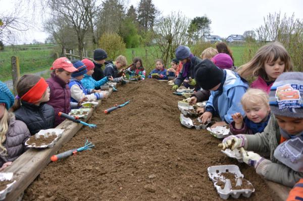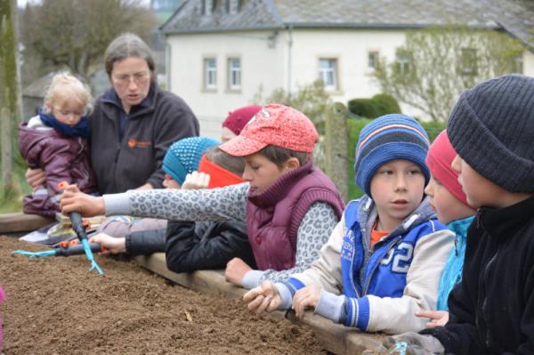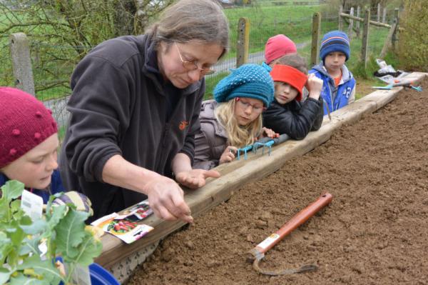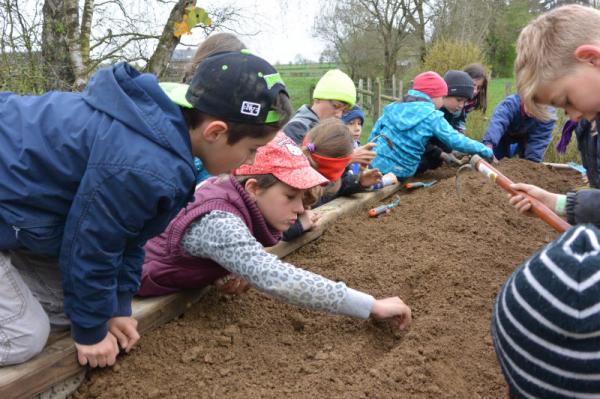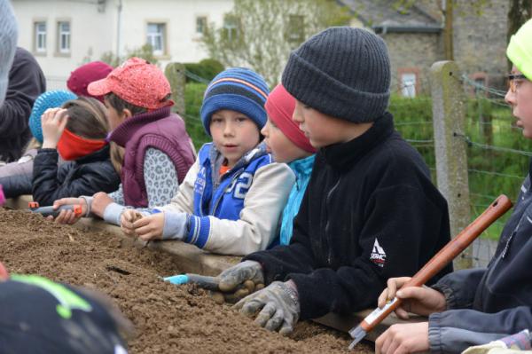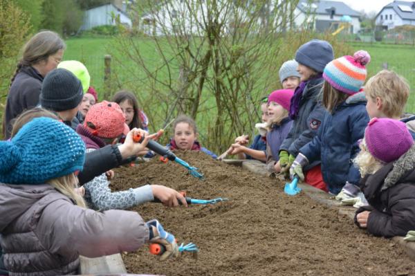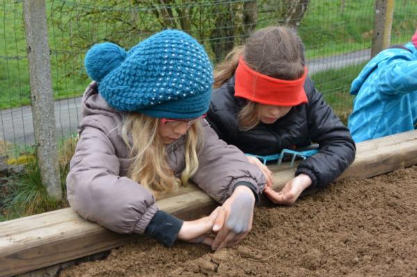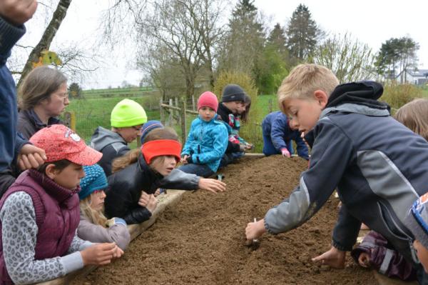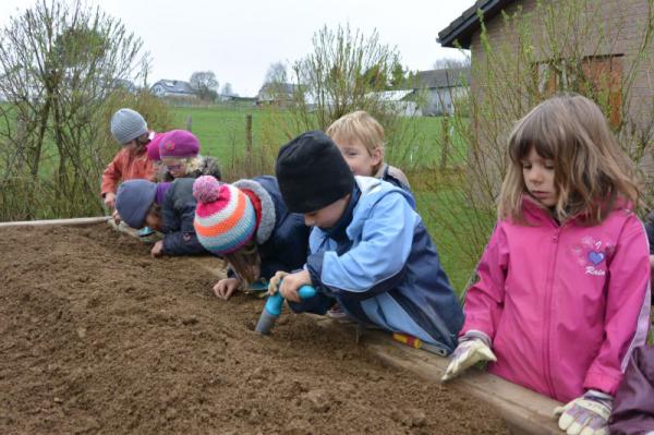 Wir säen Radieschen, Erbsen, Möhren, Salat und Bohnen
