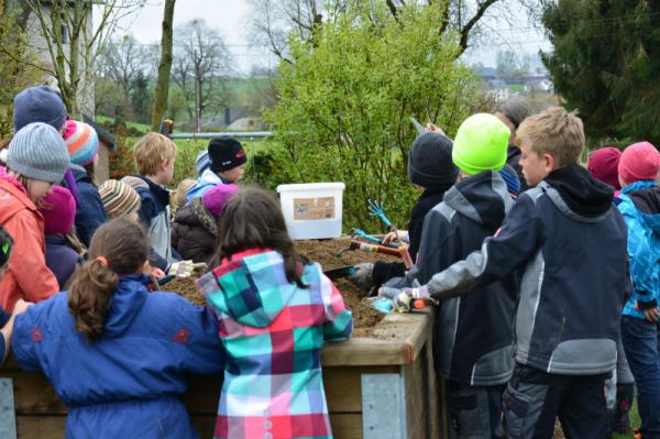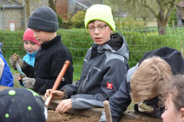 Mit dem tollen Werkzeug, das wir ebenfalls von "Gamm vert" geschenkt bekommen haben, können wir sehr gut arbeiten. Bei so vielen fleißigen Helfern ist dann in kurzer Zeit viel Arbeit getan.