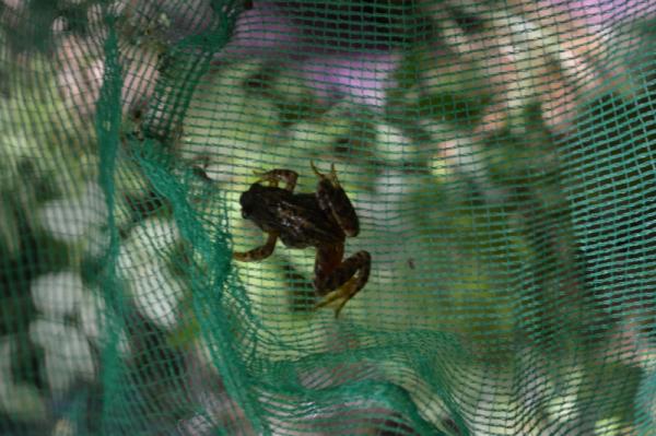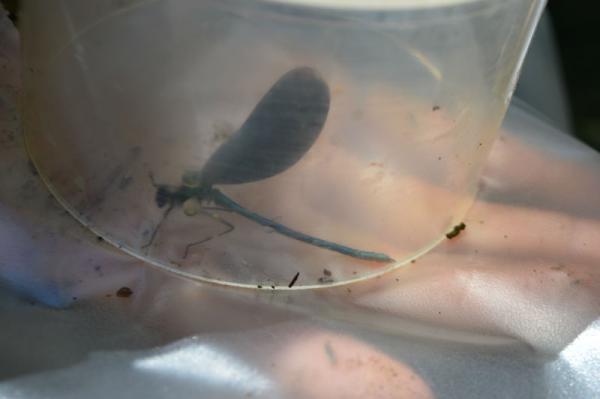 Mit Kecher fischten sie die Lebewesen und Pflanzen aus den unterschiedlichen Gewässern. Anschließend versuchten sie die Pflanzen und Lebewesen mit Hilfe einer Lupe und Sachbüchern zu bestimmen.