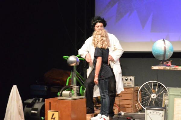 In der fesselnden Science Show Volle Ladung dreht sich alles um das Thema Strom und Stromerzeugung. Der berühmte Erfinder, Physiker und Elektroingenieur Nikola Tesla, der im 19. Jahrhundert lebte, entführt dich mit verblüffenden Experimenten in die Welt der Physik. Dir werden buchstäblich die Haare zu Berge stehen!