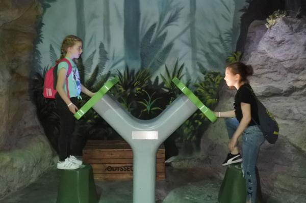 Zwischen Urwaldbäumen umherstreifen, Hängebrücken erklimmen, eine Ausgrabungsstätte entdecken und einem lebensechten Tyrannosaurus Rex begegnen. Entdecke unsere Themenwelt Leben, in der du vieles über Mensch, Tier und Natur lernst!