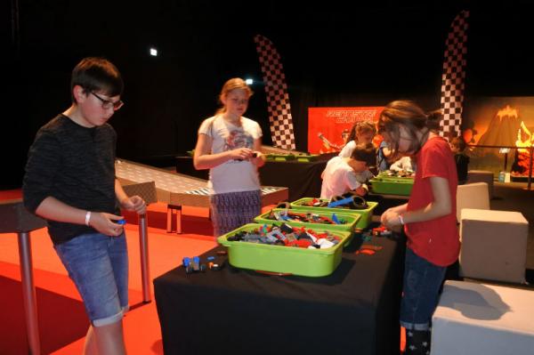 In der Rennfahrer Zone kannst du dein selbst gebautes Rennauto an den Start schicken. Vielleicht schaffst du es sogar auf das Siegertreppchen?