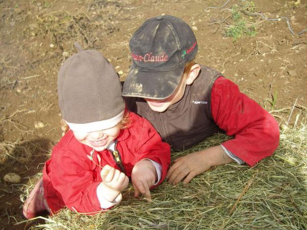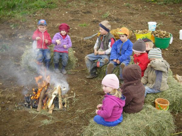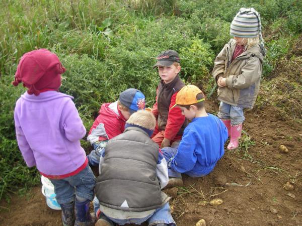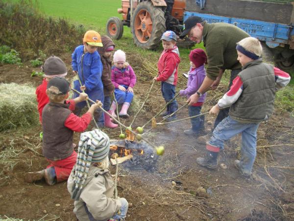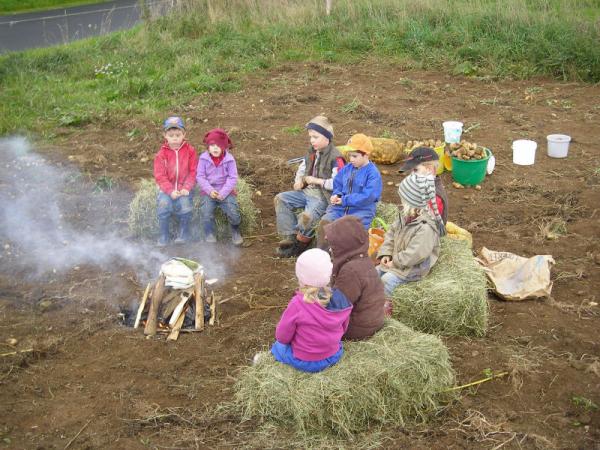 Bei Familie George haben wir bei der Kartoffelernte geholfen. Danach durften wir am Lagerfeuer Backäpfel essen.