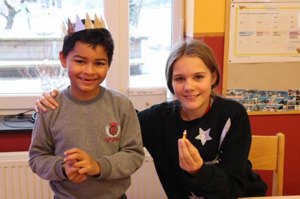 Hier seht ihr unseren König Nehemia, der Annabell als Königin wählte. Auch unser Geburtstagskind Dante hat mit seiner Mama einen Königskuchen gebacken. Er erkor Jule zu seiner Königin aus.