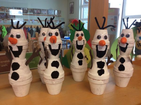 Olaf wurde aus Butterbrottüten, Gips oder Tontöpfen gebastelt.