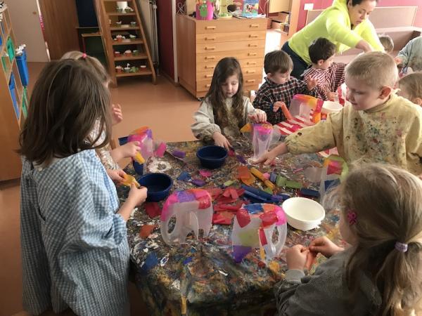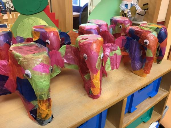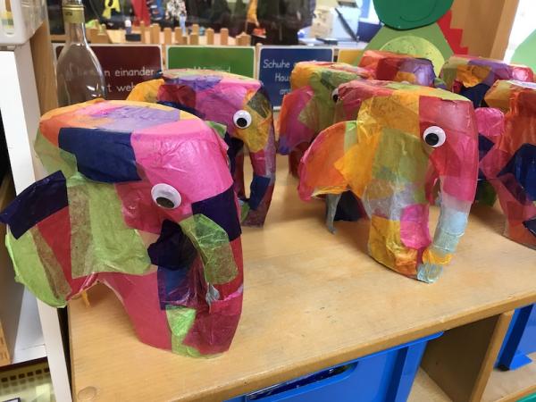 Aus Waschmittelflaschen haben wir einen lustigen Elmar gebastelt.