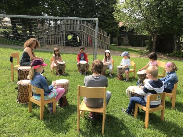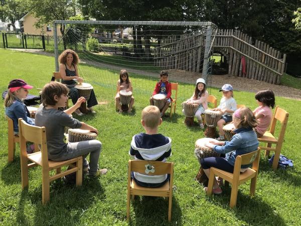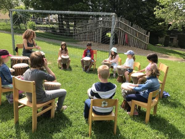 Auch die Kinder des 3. Kindergartens durften mit Frl. Patricia Djembé spielen.