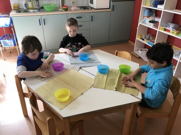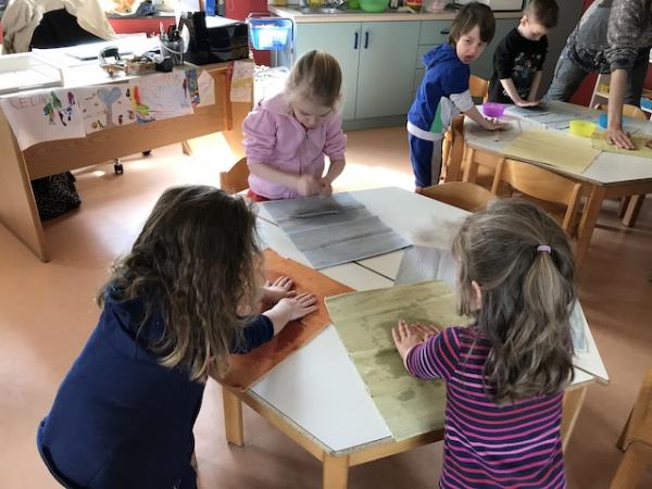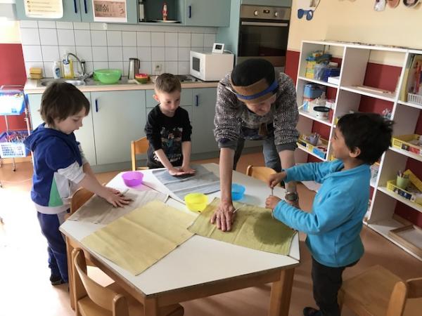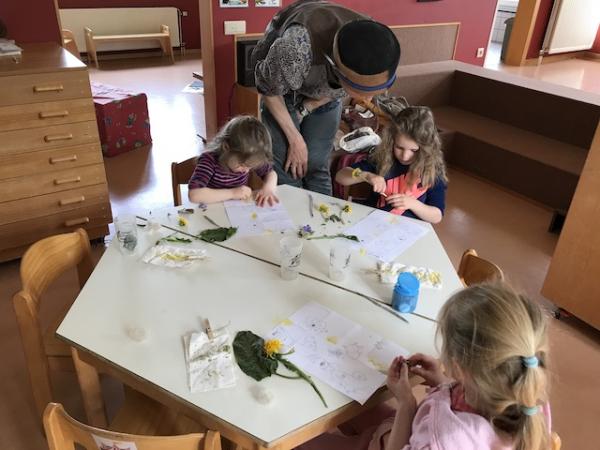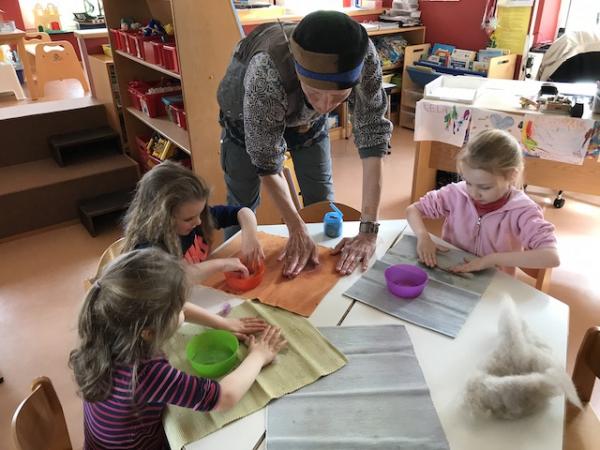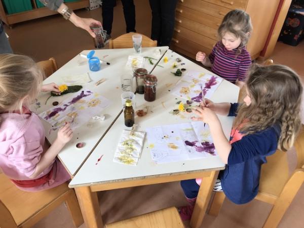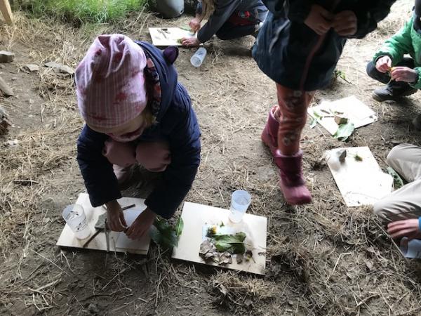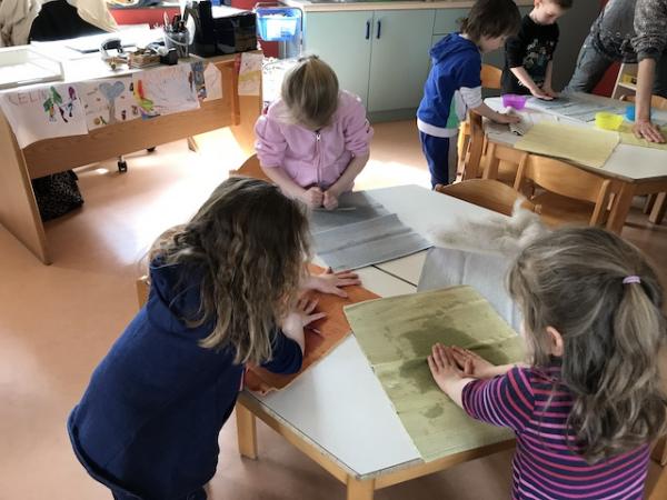 Es ging darüber hinaus um die Herstellung von Farben und Werkzeugen aus der Natur sowie deren Nutzung. Wir haben mit Naturfarben gemalt und wir haben mit viel Freude gefilzt.