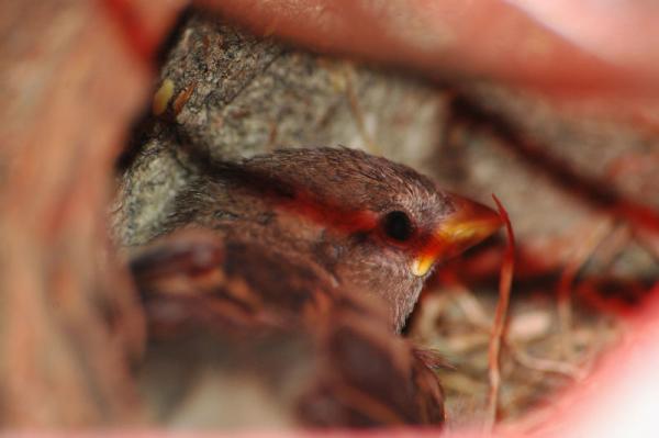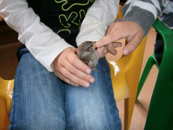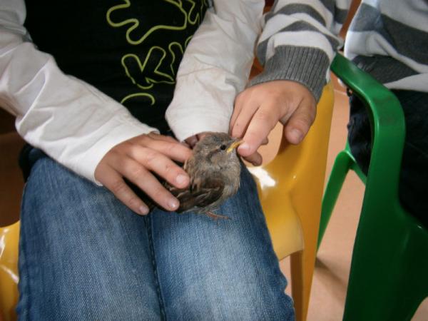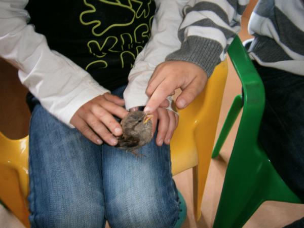 Anfang Mai hat Frl. Sandra ein Vogelbaby an der Schule gefunden, das aus dem Nest gefallen war.